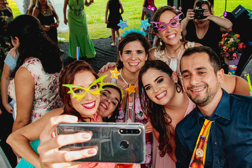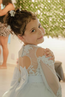 A alegria em movimento. Luzes, brindes e muita dança! Aqui, a fotografia se torna dinâmica para capturar a energia contagiante dos convidados e a felicidade plena dos recém-casados. É o registro da primeira grande celebração da nova família.