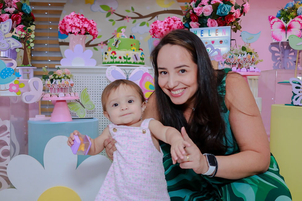 A festa de 1 ano é especial porque tudo é novo para o bebê. O brilho nos olhos da Helen ao ver a decoração, as cores e as luzes foi o melhor presente para todos os convidados. Cada detalhe do cenário refletia a pureza dessa fase, criando um ambiente onde a magia parecia flutuar no ar.